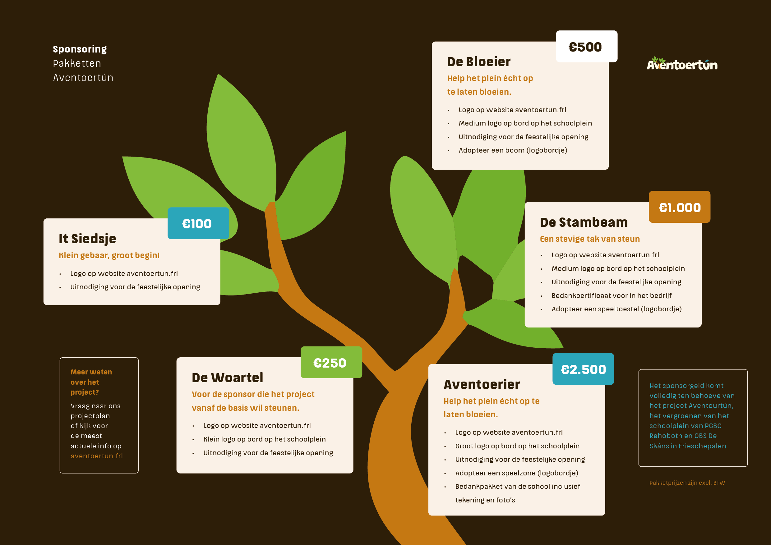 Om de Aventoertún daadwerkelijk te realiseren, hebben u als sponsors hard nodig. Hieronder vindt u de beschikbare sponsorpakketten. Hartelijk dank voor uw hulp!